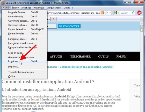 est imprimable) et de choisir de l'imprimer, comme ci-dessous "Fichier" puis